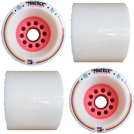 Made in a new ultra durable 74a race thane, they feature the same chunk resilience and 99.9% bubble free pour just like the original Maverick wheels, and with a precision bearing seat, they roll straight and true, giving you even wear and weight loading through turns.