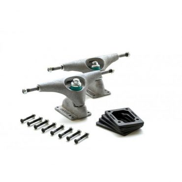 This is Carver’s hybrid surf and skate truck. On the one hand it’s a lightweight standard RKP (Reverse King Pin) hanger and base, on the other it has a patented geometry that squeezes every bit of turn and pump from the system. This means that you can pump this truck like a C7, but it lands airs and rides fakie with more stability as well. This opens up aerial maneuvers, and keys in with the latest progression of airs in surfIng.