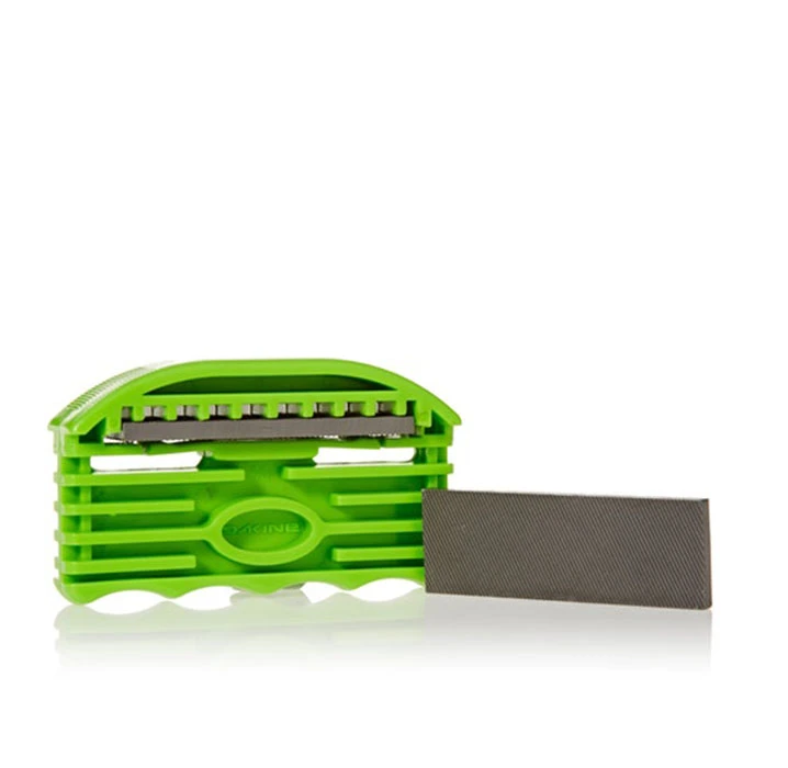 The Edge Tuner Tool combines convenience with practicality, for easy tuning anywhere. The large surface area easily rests against your base, positioning the file at just the right angle for the perfect edge. With two angle settings to choose from—0 degrees for soft or normal snow, and 2 degrees for more hold in hard, icy conditions. The two-sided file lets you choose an aggressive double-cut pattern to remove lots of material quickly, or a traditional single-cut pattern for fine-tuning. We throw in an extra file, too, to keep your edges mint even longer.
