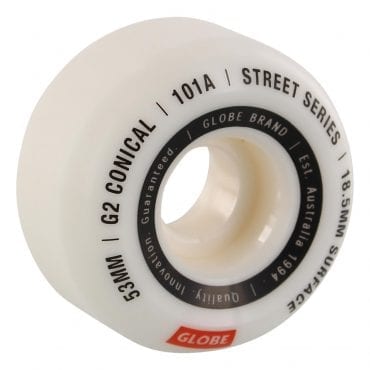 The G2 Conical Street Wheel in White/Essential is a wider surface area street wheel featuring super high rebound urethane construction, long lifespan street formula and grooved riding surface for traction. Wider surface area for extra stability and cut-back face for weight reduction and added response.