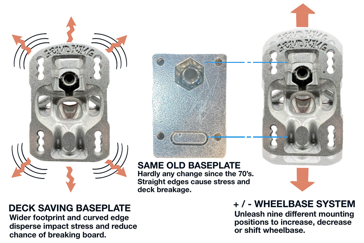 U-Beam axle – Lighter, stronger, zero slip, weight closer to board