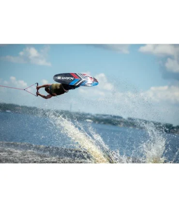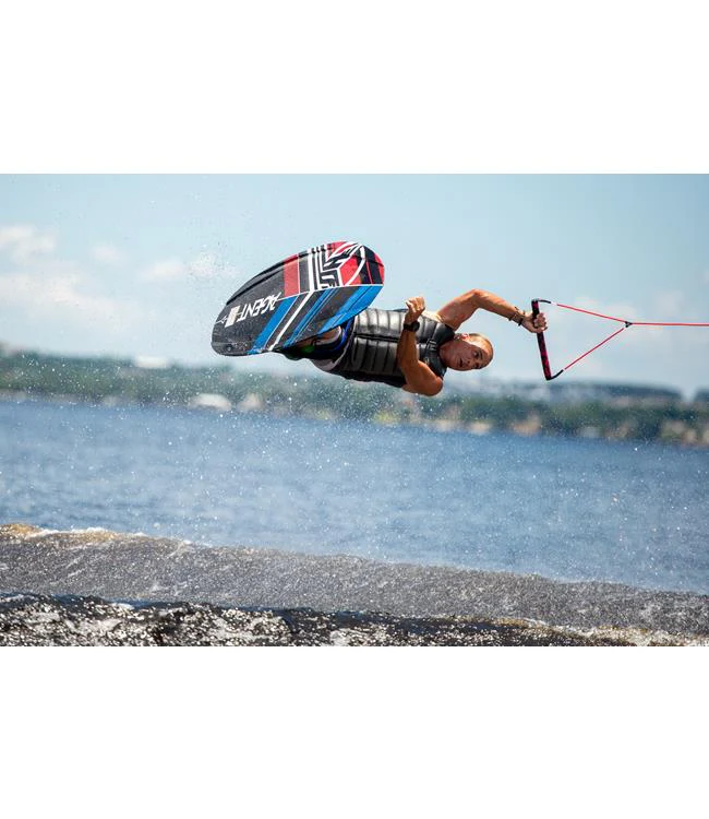 When you watch Frankie Panno ride, you know you are witnessing something special. No one attacks the wakes like that and his creative eye for cutting-edge stunts is single-handedly pushing kneeboarding to new heights. HO is fortunate to have this legend and leader pushing kneeboarding and kneeboard product design to new levels. Frankie has tweaked the HO kneeboard product line to his tastes and the result is one of the best performing kneeboards on the market. A beautifully silk screened top and base and softer density kneepad on his pro model Agent represent the pinnacle of kneeboarding. It’s a super fast board that accelerates into the wake with big pop and smooth release off the wake. The narrow tip and tail in Frankie’s latest design allow the board to spin freely and release quickly for easy transitions.