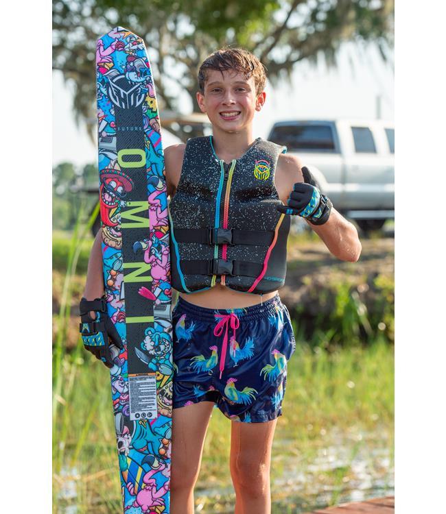 The OMNI (Mark II) wakeski, the market leader and a must-have for skiers who love to do it all, is the perfect ride for any and every body of water. Its wide platform provides easy starts, smooth turns, stable wake crossings, and, of course, loads of fun! Re-engineered with a modernized rockerline and dual flat spots for easier balance, as well as deeper concave and bigger bevels for extra stability and forgiveness, this 2nd gen OMNI is an optimal choice for swiftly mastering your water skills. All-around performance and peerless versatility – that’s the OMNI!