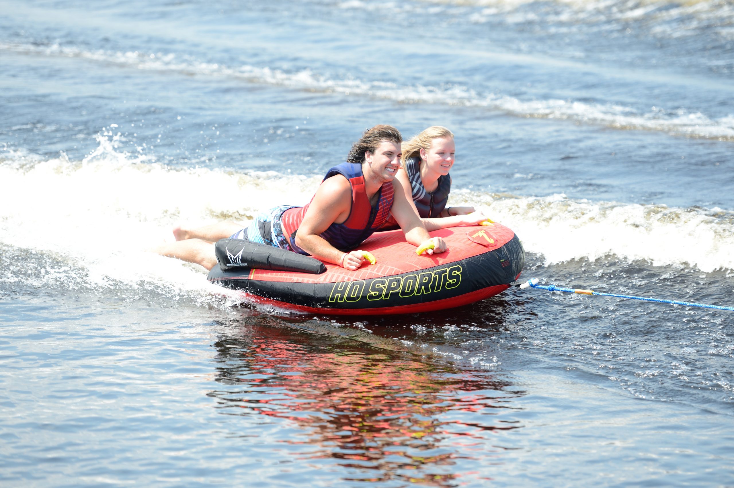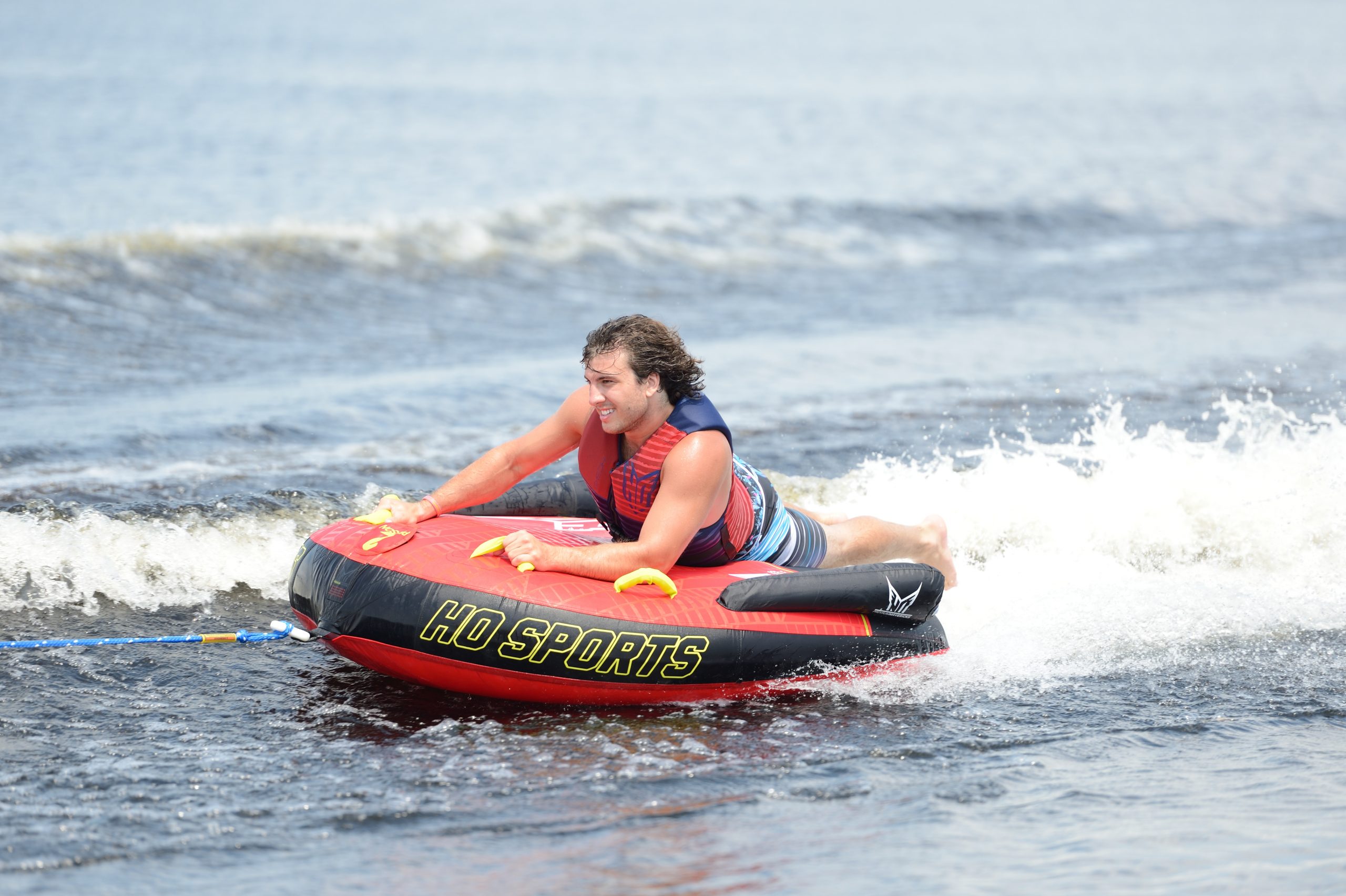 The Mavericks are the premium models in our family of deck style tubes. Traditionally, there has been very little difference between deck style tubes. You can buy one from any inflatable maker and they’re basically all the same. That is…until now. With the addition of HO Sports’ Shoftshell Technology, now you can tube all day without worrying about the abrasion or “tube rash” that you would get from a traditional nylon covered tube. This new technology is best thing to happen to tubes since the introduction of the nylon cover. Additionally the Mavericks are loaded with features such as a D-shaped profile for more legroom, a tapered design that is thicker in front which makes the tube easier to board from the water and a 3 panel construction that puts the tow attachment at a lower position on the tube resulting in the tube being pulled in an upward direction even from a low tow point.