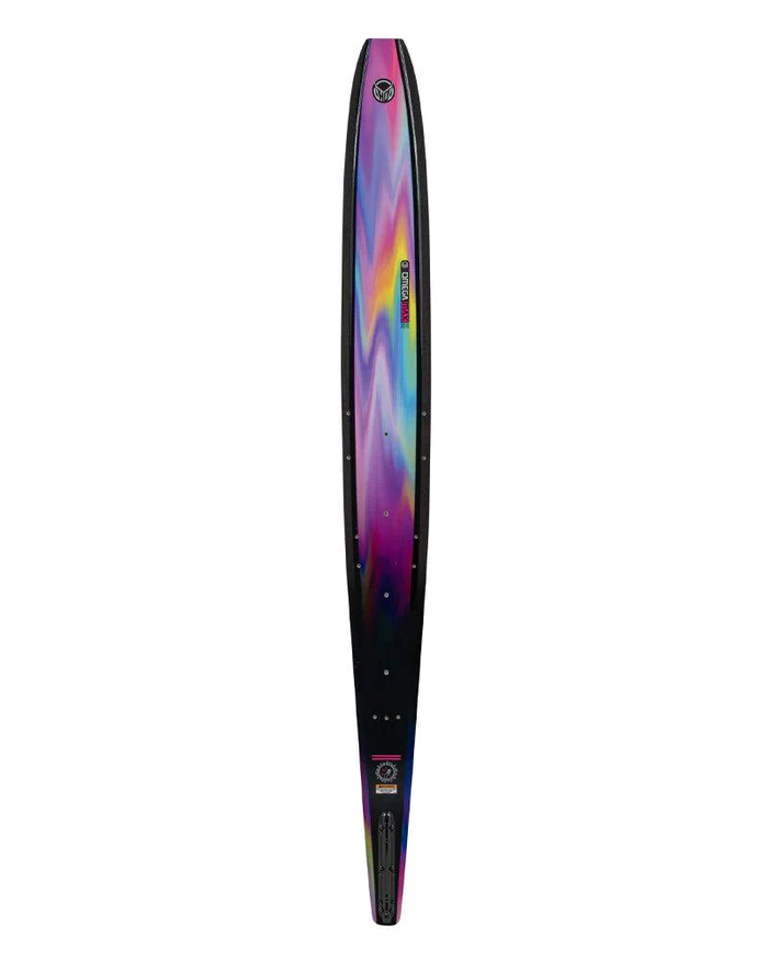 The HO Carbon Omega Max develops from the course capabilities of the syndicate models and makes it skiable for almost any type of skier, in a wider, softer package. Increasing width in the ski has allowed for a course ski that has become more forgiving and stable but can still generate increased lift and speed, leading to the early tight line skiing you only see in your dreams. Keeping the 4-stage rocker from the regular Omega provides a true flat spot and tabling point under the skier’s front foot, allowing the skier a true balance between the stability of the width and the ability to carry through the wash and outbound better than any previous syndicate before it. A low volume concave and a tail with more surface area allow the Omega to maintain a more consistent speed and easily carry it through the turn. The major difference from the Syndicate bigger brother is its PU core design and carbon layup, allowing this ski to handle slower speeds and be softer out of the turn. Finally, the Omega Max continues HO’s staple and carries the signature carbon fibre speed skin, and tapered tail technology helps reduce drag and hit turns harder.