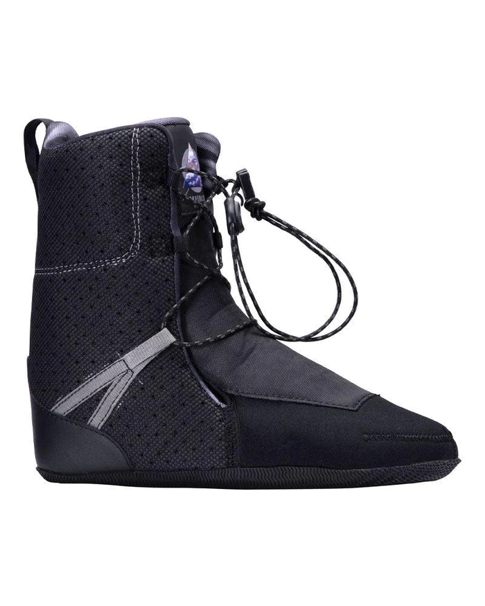 The Hyperlite Defacto Boot is the removable liner high-end boot, offering a more freestyle option. In reality, it is the binding for anyone and everyone. A vital feature of the Hyperlite closed toe range is the 3 part construction, creating comfort and support underfoot, reducing the feel of impact when you land, and increasing response and performance. However, each boot is slightly different, with the Defacto offering the hybrid boot that will suit both boat and cable riders alike. Utilising a medium flex and range of motion design, the Riot carries the signature internal mainstays Hyperlite has become known for, such as an internal ankle harness and Hypercush insole. These features help to create added support around your ankle and provide a plush feel from the first time you put the boot on, then wrap it in a removable liner, allowing you to have the option to stomp the cable park between laps without running barefoot!