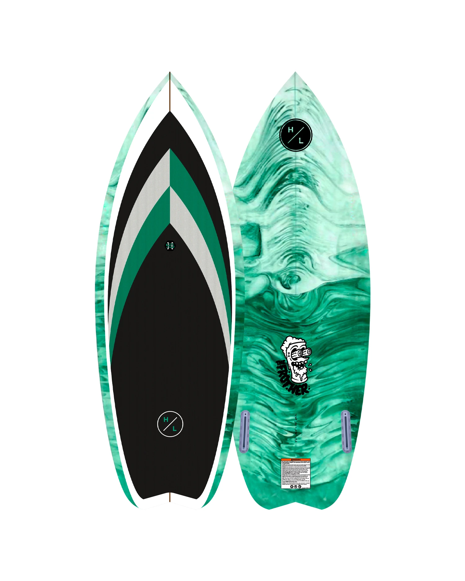 Hyperlite’s Frother 2.0 wakesurfer is reborn after popular demand utilizing our handmade epoxy construction. This twin fin design has a wide rocket tail creating extra speed and drive for explosive turns and airs in the wake. Riders will also enjoy a loose feel if desired as this unique tail rocker combines the float of wide tail shapes and response of sharp rails. Hyperlite’s epoxy construction feels lively under foot as you push the board through maneuvers and the single to double concave channels water for effortless speed down the line.