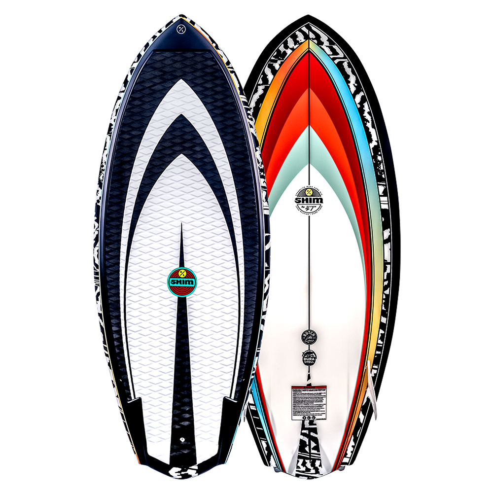 The Shim is perfect for intermediate to advanced riders looking to take their skills to the next level. The Shim has a fast rocker that allows it to carry speed anywhere on the curl, and its shorter profile makes it super maneuverable for rotational and air tricks. This new shape also features our all new DuraShell Technology which combines the buoyancy and feel of a high-end EPS board and the durability of a compression molded shape. Overall, this new board is the best of all worlds and one that a wakesurf enthusiast can’t pass up.