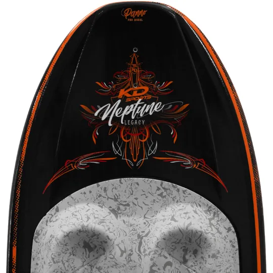 When news that KD Sports had recruited visionary Frankie Panno to the head up their kneeboard team, everyone’s next thought was ‘But what will he ride?’. As a titan of the sport, Frankie has seen board companies come/go and always revered the original twin tipped Neptune shape on which KD Sports paid homage too with their own board of the same name. In true perfectionist form, Frank made the tweaks he felt it needed and from that the ‘Neptune Legacy’ was born. Starting at its heart, an ultralight ‘Procore’ that blended the right amount of mass/forgiveness needed to charge down the largest of wakes was sourced. Unlike the original Neptune that featured a blended layup, Frankie equipped the Legacy with a full carbon fibre construction to maximise the transfer of energy delivered from the blended rocker off top of the wake for unrivalled pop.