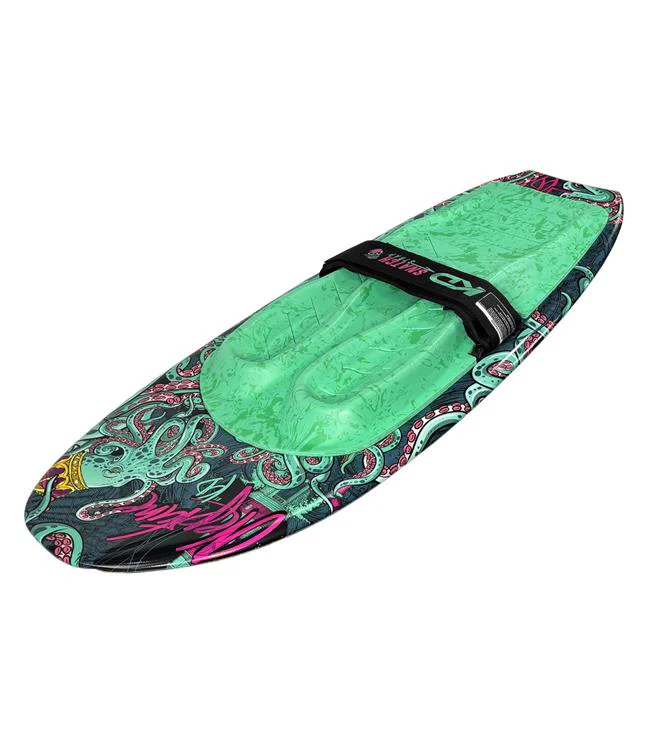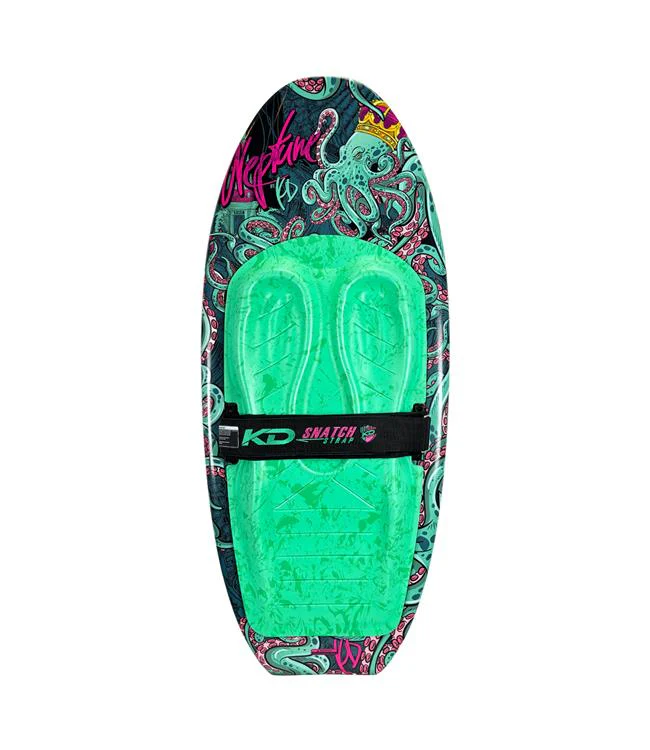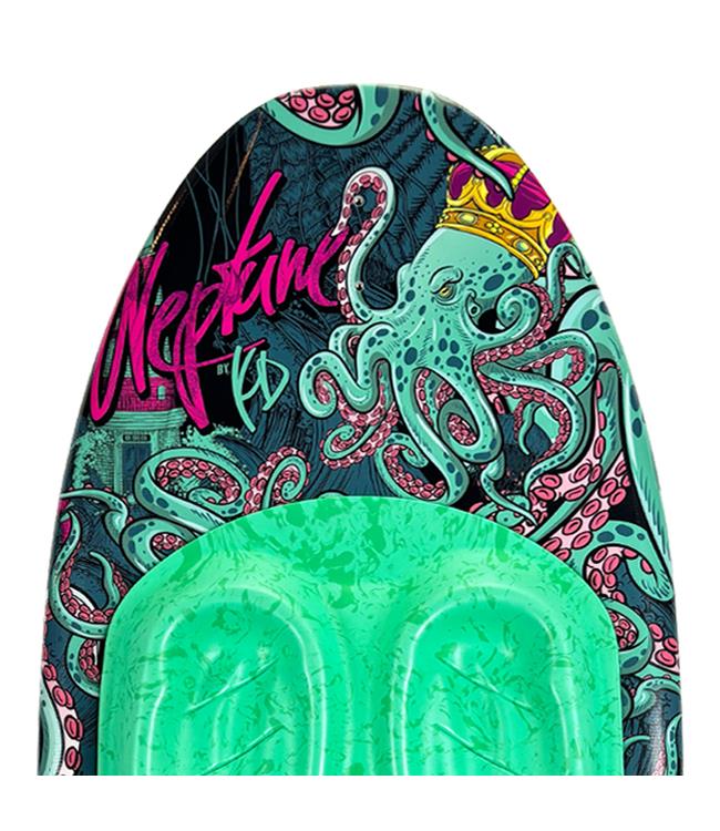Ditching the symmetrical shape and opting for a rounded design, the Neptune has greater edge hold and faster transitions. Along with the ultralight foam core, the Neptune features carbon inlays running from beneath the pad to the tip of the board to not only add strength but generate pop. Poor riding conditions have often been kneeboarders worst nightmare but with the triple-layered knee pad and landing spine displacing water, riders can charge with confidence. The Neptune comes fitted with a dual locking ‘Snatch’ strap that uses stiffer full width Velcro, plus an additional strap layer that allows the belt to be cinched down tighter.