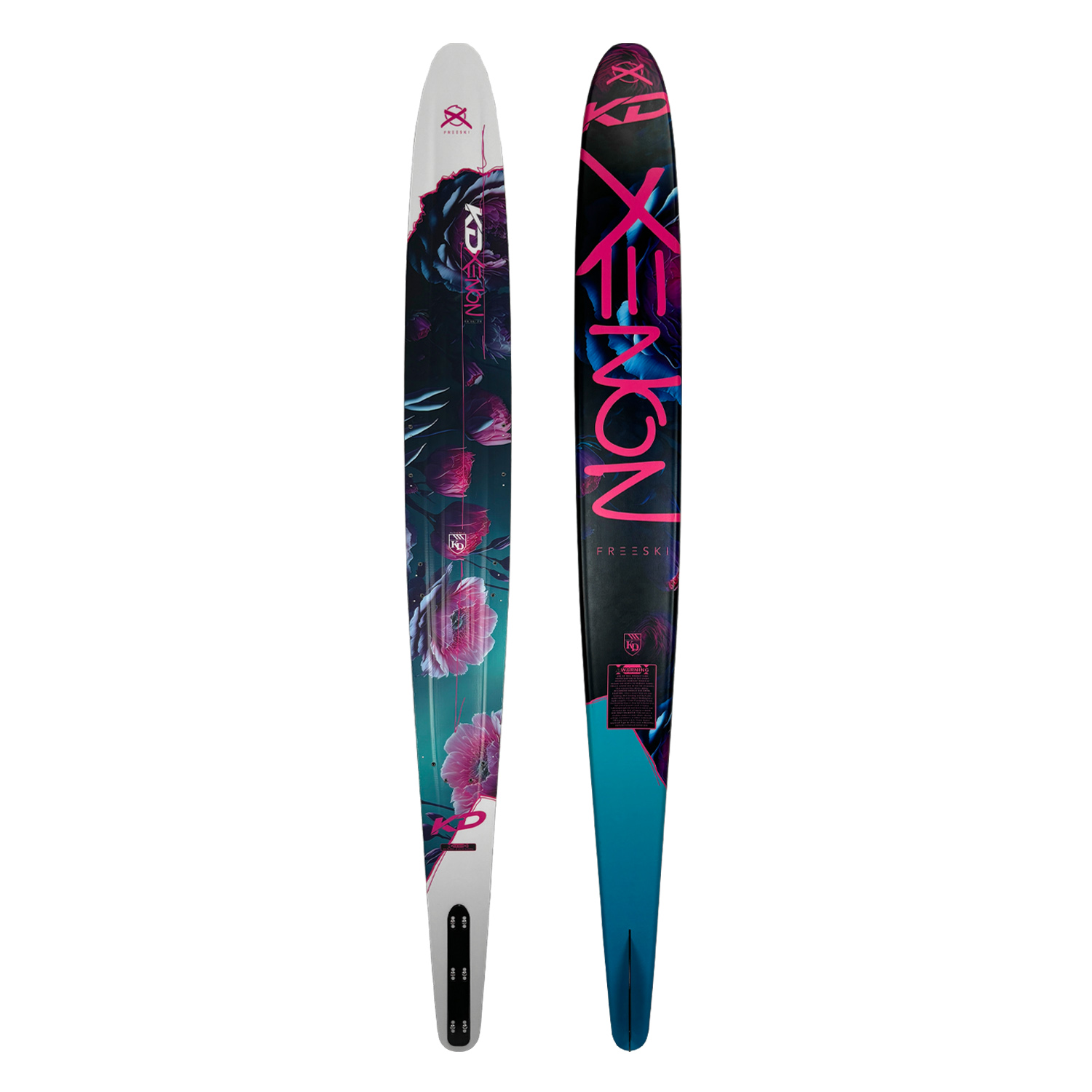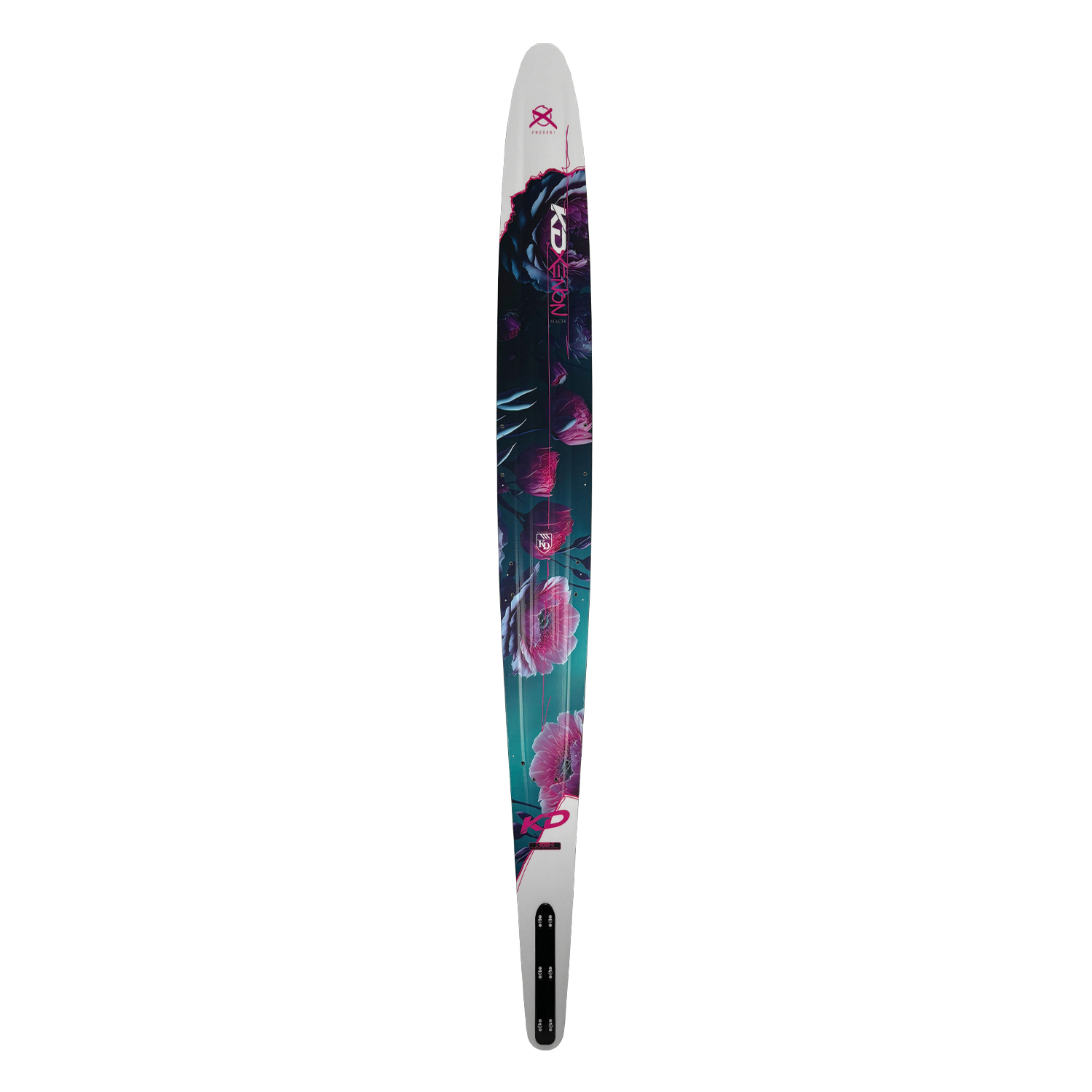 The KD Xenon is a sassy blend of performance and stability, specifically designed and built for female skiers. The shallow rounder bevel and concave design allows for smooth transitions between turns without being too unstable. Soft bevels keep the ski high on the water through the turn to give a smooth, predictable radius. A fiberglass layup combined with the softer flex line eliminates unexpected chatter of the ski through the turn and across the wakes. The Xenon is the essence of silky smooth turns and poised wake crossings known and loved by female skiers everywhere.