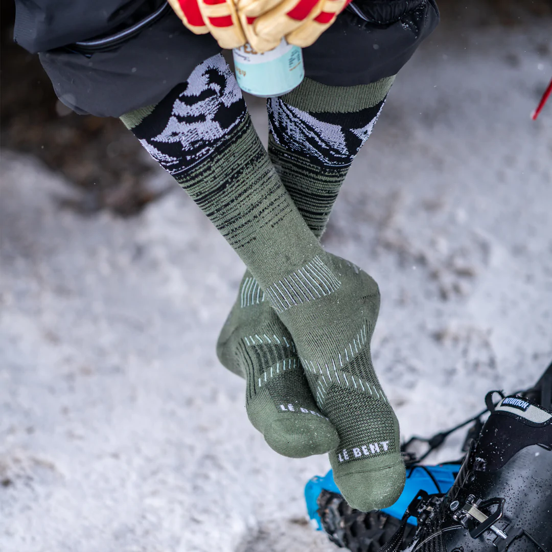 After two long years of rigorous R&D and raving reviews since release, the NEW Cody Townsend Pro Series backcountry sock has landed! Cody and the Le Bent team of foot nerds went to town on the new, elevated aesthetic of the ‘Le Send’ sock to create a design that speaks to the sculpted peaks and shadowed shutes that will inspire the adventurous and creative brains of any backcountry dweller. Notably one of the highest regarded big mountain free skiers of this generation. Cody Townsend has a long list of accolades under his belt including the epic tick list he’s gone after as showcased in his series ‘The Fifty Project’ – where he decided to not only ski down fifty of the best big mountain lines in North America, but also climb each of them too. A true testing ground for the evolution of the world’s first backcountry sock.