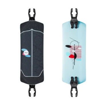 The rocker profile gives the rider a locked-in, secure, laid-back feel. The concave “tub” design is flat in the middle and slopes up towards the side rails of the deck, resulting in added comfort, responsiveness, and agility. Greater real estate provides the option to adjust your stance over longer distances and to alternate pushing between mongo and regular.
