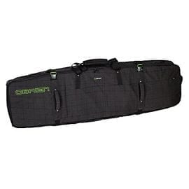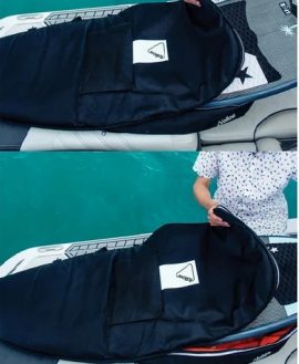 Nylon dog clip at nose end and strap can be stashed inside cover.
