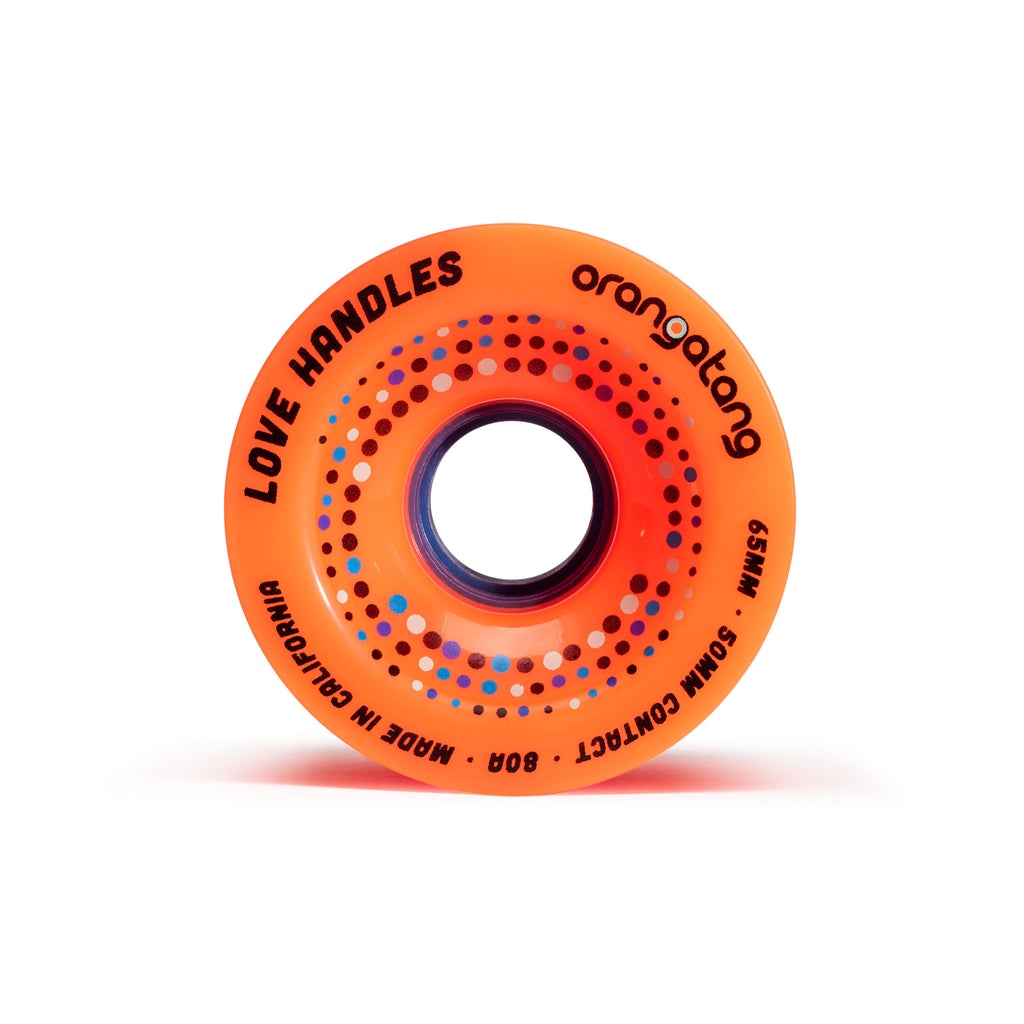 The Orangatang Love Handles: quick and light meet plush and grippy. A traction-focused design in a compact package for agility, acceleration, and control. With a wheel this pumpable, you’ll never do crunches again.