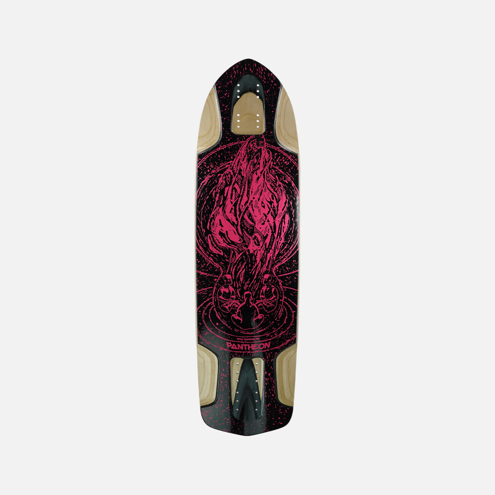 The Mitty Pro was conceived as an ideal board to satisfy downhill riders looking for a slim downhill setup with slalom trucks and fat wheels. GRIP CITY. Still plenty able to freeride, and while some riders are preferring decks like this for mashing big slides down mountains, it truly excels as a race deck. We have been prototyping this shape for nearly a year, and as we were honing in on the concept, bringing Mitch Thompson aboard the Pantheon team, it was clear Mitch would be an awesome outlet as a pro model for this concept. Upon working with Mitch, he was in love with the feel of the board, and we were in love with working with him! We nailed down and tuned the shape to his liking, and here it is in its final form!