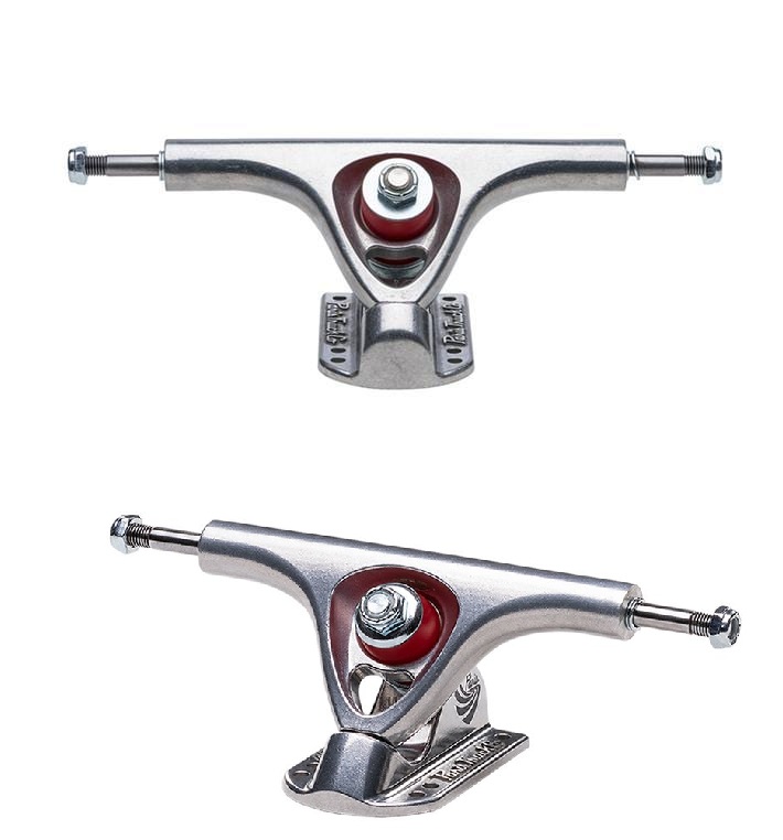Looking to cut some serious turns and get your swerve on? Look no further! The Paris V3 150mm trucks are your go-to carving truck. The narrow hanger allows for quicker turning and increased leverage compared to a wider truck. The 50° baseplate provides a excellent balance of stability and maneuverability for the front & 43º for a little less turn for the rear . Perfect for smaller boards, smaller riders, and the deep carver in all of us, the Paris 150s will get you diving into quick cuts and surf-inspired slashes in no time!
