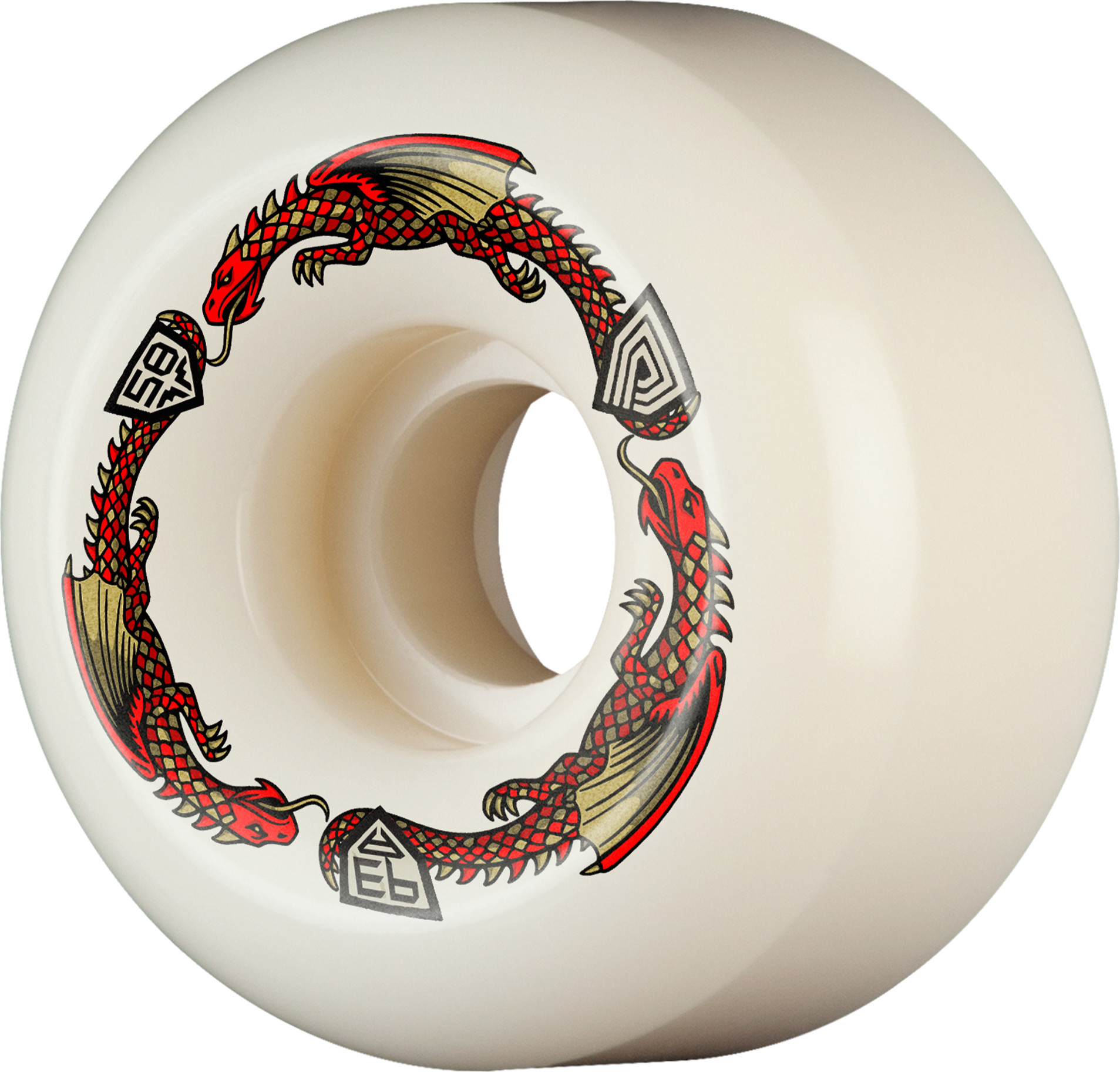 The amazing Dragon Formula™ (DF) Urethane used to create these wheels is another industry leading innovation from Powell • Peralta. DF-93A Dragons will not only roll over rough terrain, but also grip and slide like 99A and 101A wheels do, so that you can do all your normal tricks and more on the greater range of skate terrains made skateable by its softer 93A hardness.