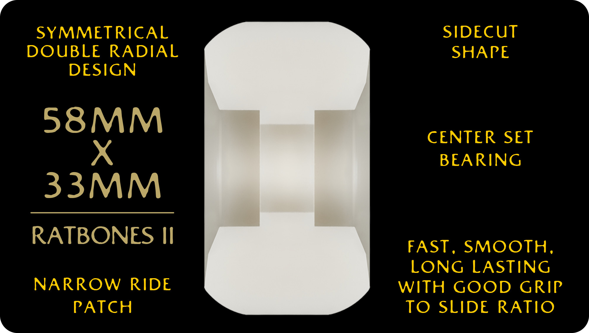 Powell Peralta Dragons 95A – Ratbone II Symmetrical Shape – Narrow Ride Patch – 58mm x 33mm 95A Ratbone II Skateboard Wheels 4pk
