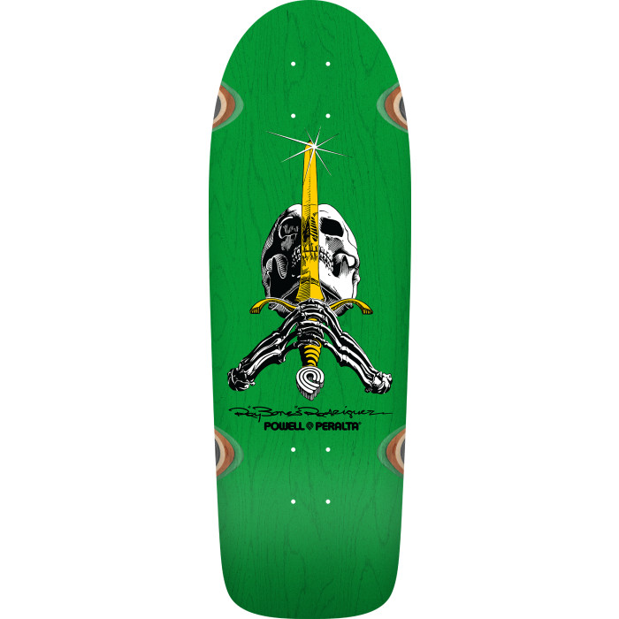 Powell Peralta OG Ray Rodriguez Skull & Sword Reissue Skateboard Deck Green Stain – 10 x 30
