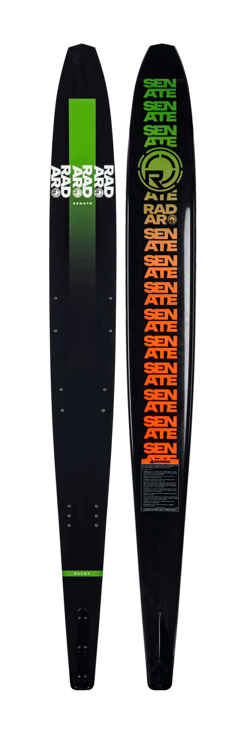 Our best-selling ski for a reason. We pair a polyurethane core with Paulownia wood stringers, wrap it in carbon and push play. The result is incredible speed to the wakes, but with a softer more predictable ride through the turn. From the back waters to the buoys, glassy mornings to afternoon chop, the Senate Alloy is the perfect choice for any skier in the boat.