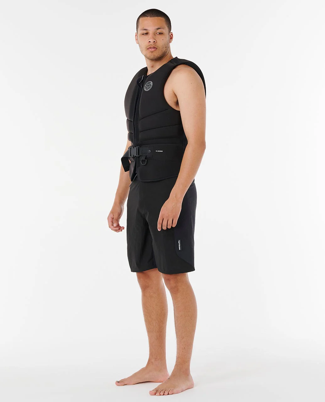 The E-Bomb Buoy Vest features padded E5 neoprene, a kidney belt with single buckle, seamless underarm construction, and ergonomic design for ultimate flex and freedom of movement during water sessions.