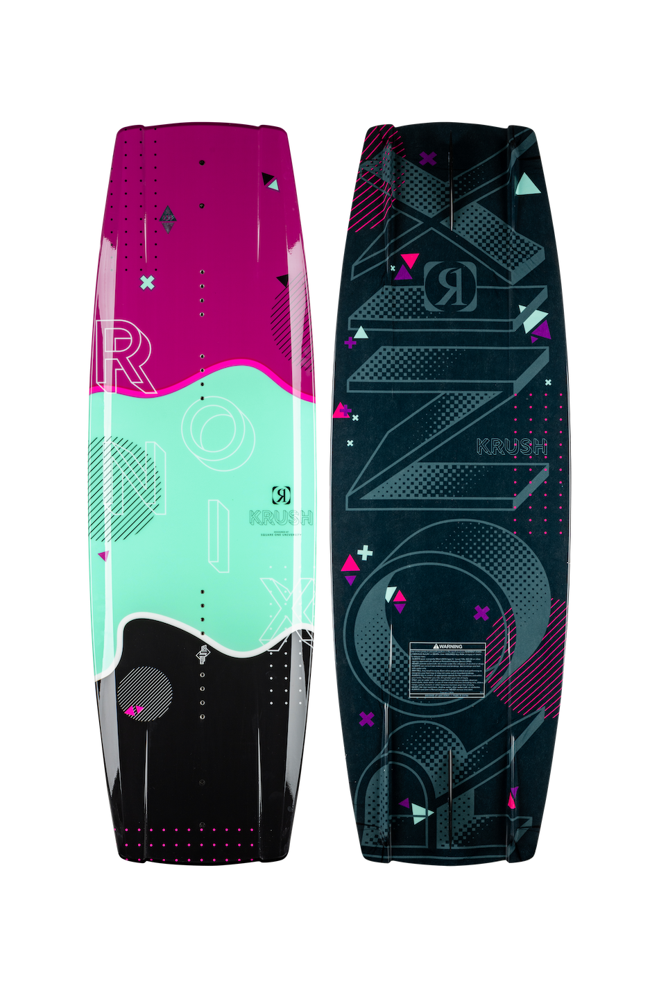For over 20 years we have been designing boards recognizing that your shoulders and hips are not always parallel in wakeboarding. Your body is crossed up riding toe-side, and more inline riding heel-side, and every aspect of the Krush takes this into consideration for the proper foundation to your riding. More vertical sidewall and shorter molded in fins on your heelside edge creates more glide with a quicker release. While a longer molded in fin and sharper rail on your toeside edge creates more water contact for a stronger more secure edge hold. All the while with our most naturally centered rocker line. This arc was designed to be ridden very neutral putting the rider in a more relaxed weight distribution.