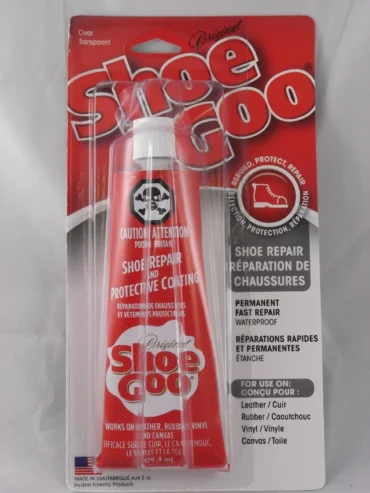 Shoe Goo is a superior no mess adhesive and sealant that easily and permanently repairs all types of footwear. It adheres to all kinds of materials, so use Shoe Goo to mend rubber soles, tears in canvas or leather tops or to stop shoe laces from fraying.