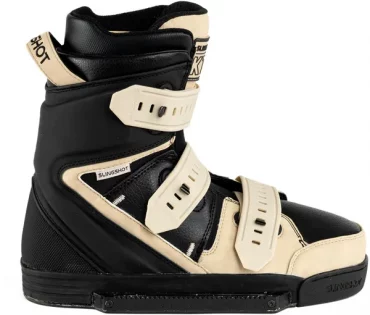 The KTV boot is hands down the simplest and most versatile wakeboard boot in the game. With a fixed liner and three simple Gummy Straps, you be mounted up and off the dock or swim platform in a matter of seconds. Entry and exit is a breeze, and the flex offers a perfect combo of support, comfort and maneuverability. For boat riders and cable wakeboarders alike, the KTV has all the essentials with no added flair, keeping it nimble, lightweight and low profile.