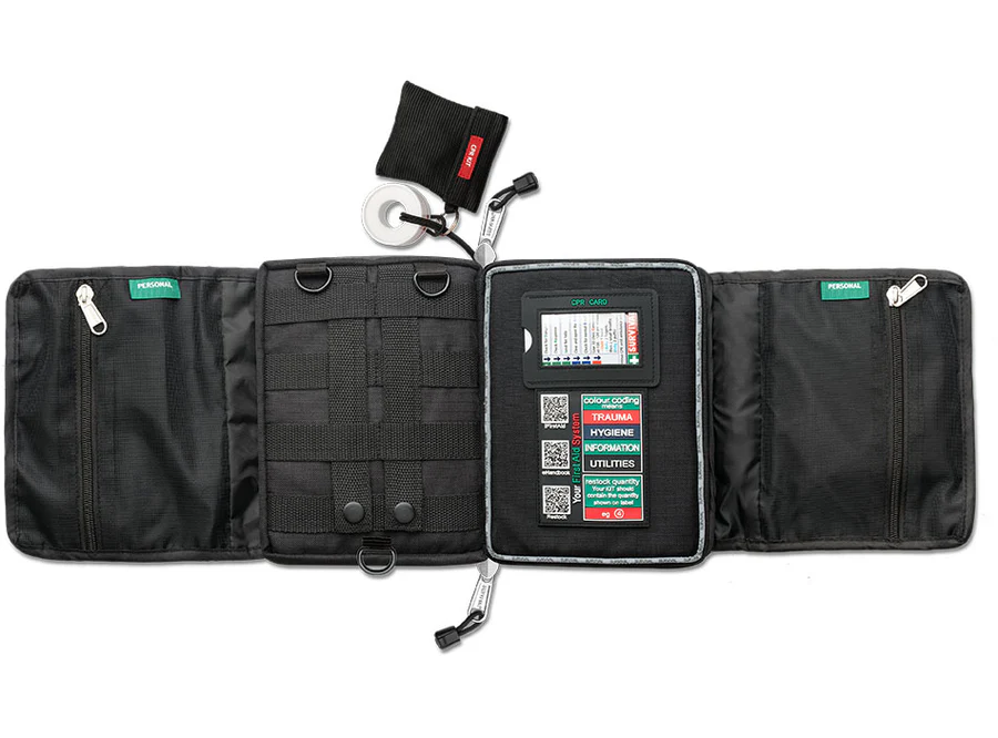 - 1 x Resuscitation shield, disposable, incl 1 pair gloves & skin cleaning wipe (in CPR KIT)