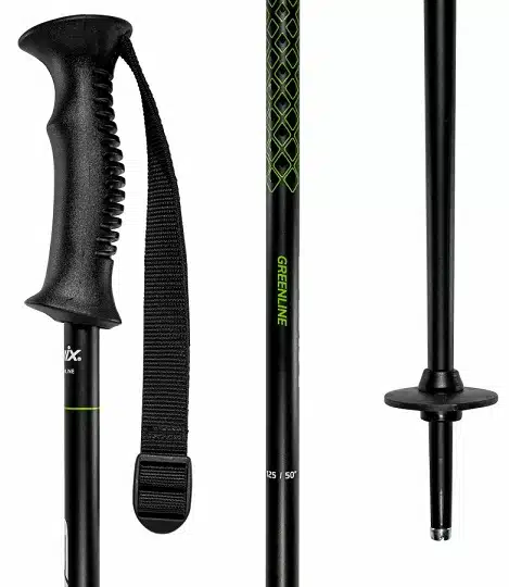 Greenline alpine pole is a great choice for a wide range of alpine skiiing. The shaft has a high quality aluminum with functional components. Ergonomically designed handle and basket for various snow conditions. A perfect choice for beginners.