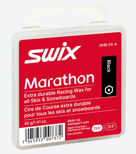 Marathon Black is engineered for wet, dirty snow, with a black additive that reduces friction and prevents debris buildup on your skis. Delivering reliable performance even in cold conditions, this wax is perfect for when the going gets tough. Reheat to boost durability and enjoy extended glide. For best results, apply with a waxing iron set to 155°C.