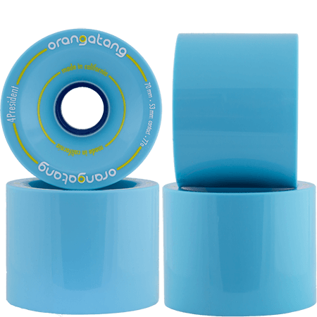 The Orangatang 4President 70mm 77a Blue longboard skateboard wheels accelerate ridiculously fast and are great for entry pre-drifts and quick exits. Great for carving, pumping, speed and speed checks.