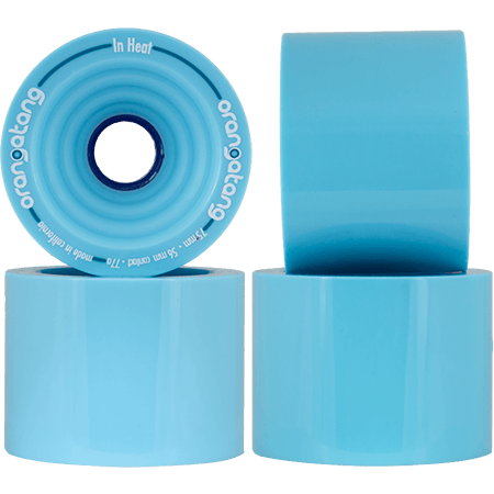 The downhill machine wheel of Speed racing known as Orangatang In Heat’s are grippy and smooth at speed. Bigger better faster and more urethane to wear out. Orangatang’s have now expanded the blue 77a urethane to the In Heat longboard wheels lineup. A softer version of their best-selling downhill baller. The blue 77a formula is the smoothest, fluffiest, grippiest, most thane-line-leaving urethane in Orangatang’s history.