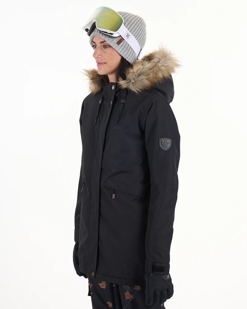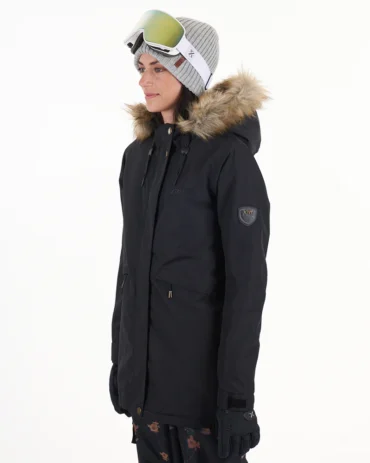 When you blend style and function you make the Demi Ladies Ski Jacket. A classic all-mountain jacket this lady’s ski jacket is your perfect winter companion, crafted with waterproof/breathable 15,000mm/15,000gm fabric, fully taped seams, and 80/60 g/sqm insulation through body/sleeves. With a hood boasting removable faux fur, removable powder skirt, pit zips, YKK main zip, and numerous pockets, you can ski or snowboard all day in total comfort and style while remaining protected from the elements.