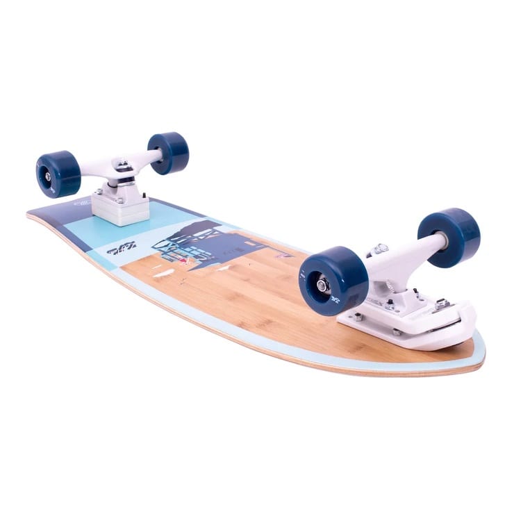 Z-Flex have joined in on the surf skate world and bring you the Bamboo Fish 31″Surf Skate Complete Cruiser. For those who crave the waves but the swell is low, get your fix and take this super surfy skateboard to your local alley and burn some wheels while throwing cut backs, pumping down the line and get pitted by over hanging trees. The kids are going to love it right! Wrong they will love it and so will any age group while tuning their legs and getting ready for that long awaited surf trip. At 31″ you will get a very reactive fast feel, get a nice workout when commuting to work or just shooting down to the shops.
